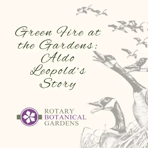 The morning begins with check-in, light refreshments, and a poetry reading, followed by a screening of Green Fire: Aldo Leopold and a Land Ethic for Our Time, a documentary exploring Leopold’s work and the ongoing relevance of his land ethic. Attendees will then participate in small and large group discussions before concluding with a guided tour of Rotary Botanical Gardens.
