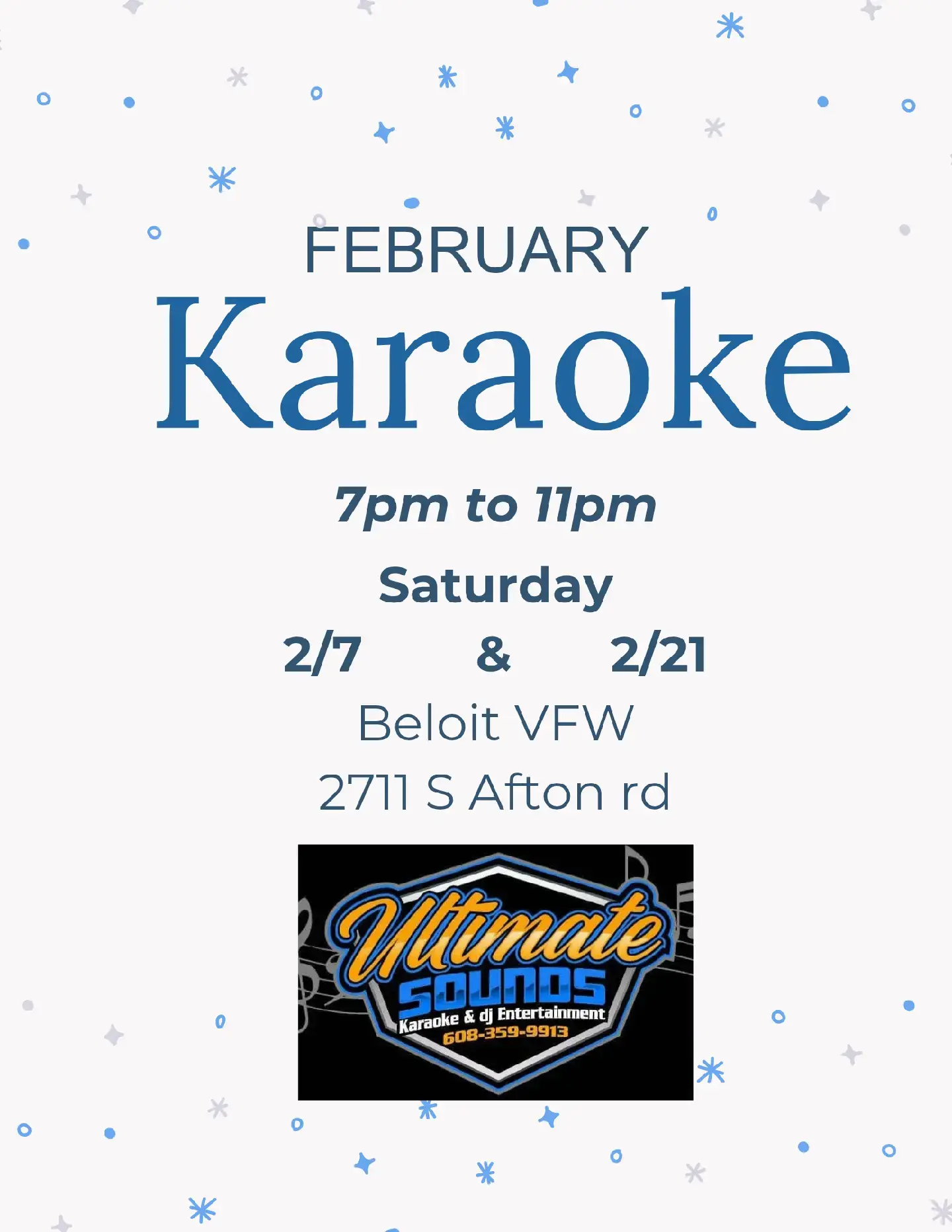 Beloit VFW is having Jaraoke Saturday Night.