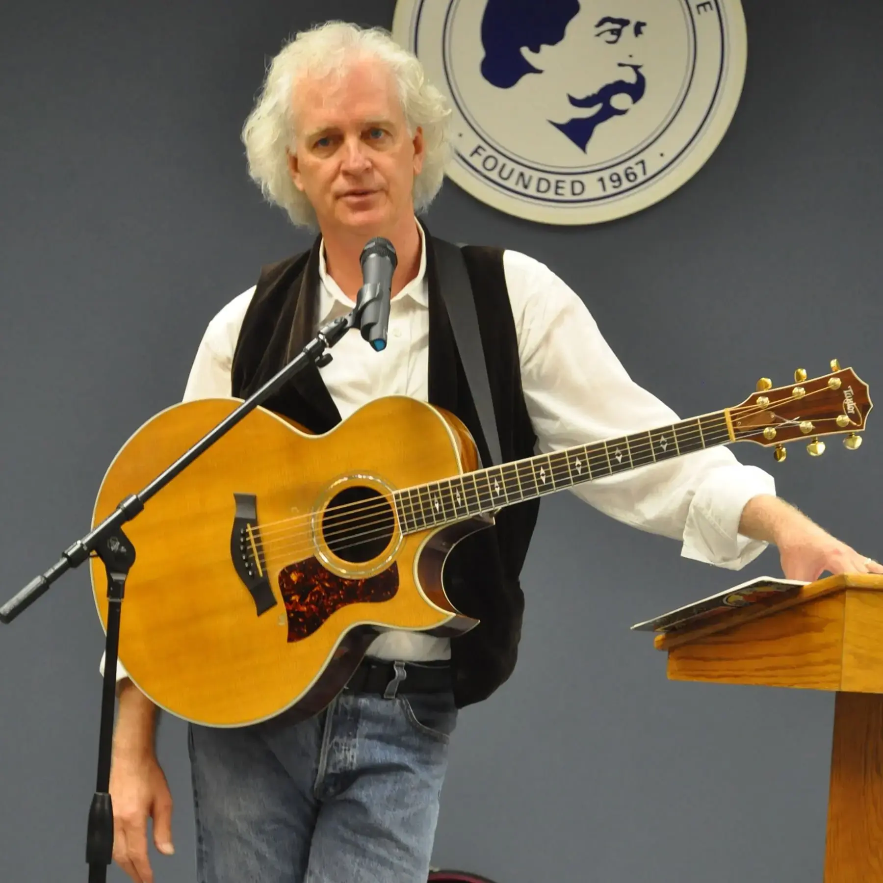 This Land Is Your Land is a program that combines music performance (guitar and vocal) and spoken commentary. The program features songs by legendary folksinger and songwriter Woodrow Wilson “Woody” Guthrie (1912-1967), as well as commentary on the time period and each song. This commentary frames the program in a larger historical context, and offers specific details on Guthrie’s songs and his biography. The program also includes two singalong songs.