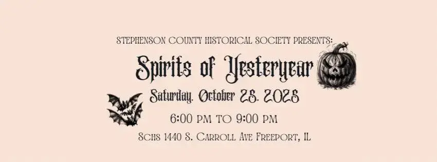 Spirits of Yesteryear Returns for a Spooky Evening of Local History and Storytelling Freeport, IL – The Stephenson County Historical Society invites the public to a hauntingly fun night of ghost stories, local legends, and eerie encounters at its annual Spirits of Yesteryear event on Saturday, October 25, 2025, from 6:00 to 9:00 PM. Held on the museum grounds at 1440 S. Carroll Avenue in Freeport, this family-friendly event brings together local history and supernatural tales for an unforgetta...